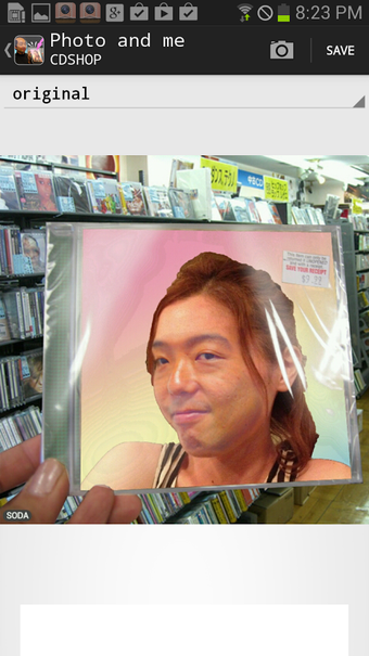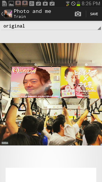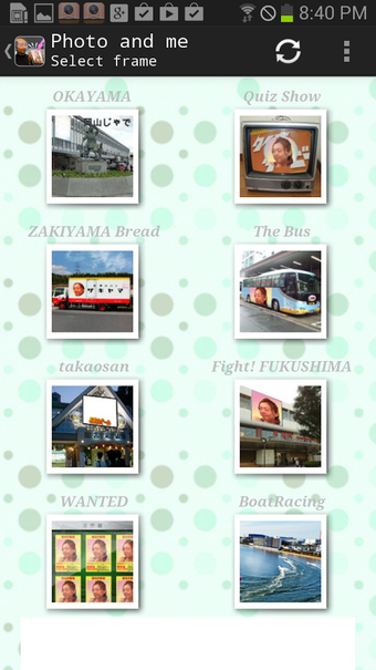 トップメニューの「画像を作成」から、「ビルボード」「スポーツ紙」などおしゃれなものからおもしろいものまで様々なテーマのフレームが表示されます。フレーム内の「TARGET HERE」の箇所に写真を合成でき、写真はその場で撮影するかギャラリーから選べます。写真の表示範囲を設定すれば、合成写真のできあがり。