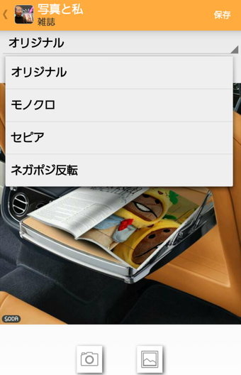 また、写真全体に「モノクロ」「セピア」「ネガポジ反転」のフィルターが付けられます。例えば、「警視庁は容疑者の身柄を確保。」といったトップニュースの写真にネガポジ反転を加えれば「ガーン」と効果音がでるようなショックなインパクトが出て、ヨーロッパ風の街の写真にセピアを加えればよりおしゃれな雰囲気になるでしょう。